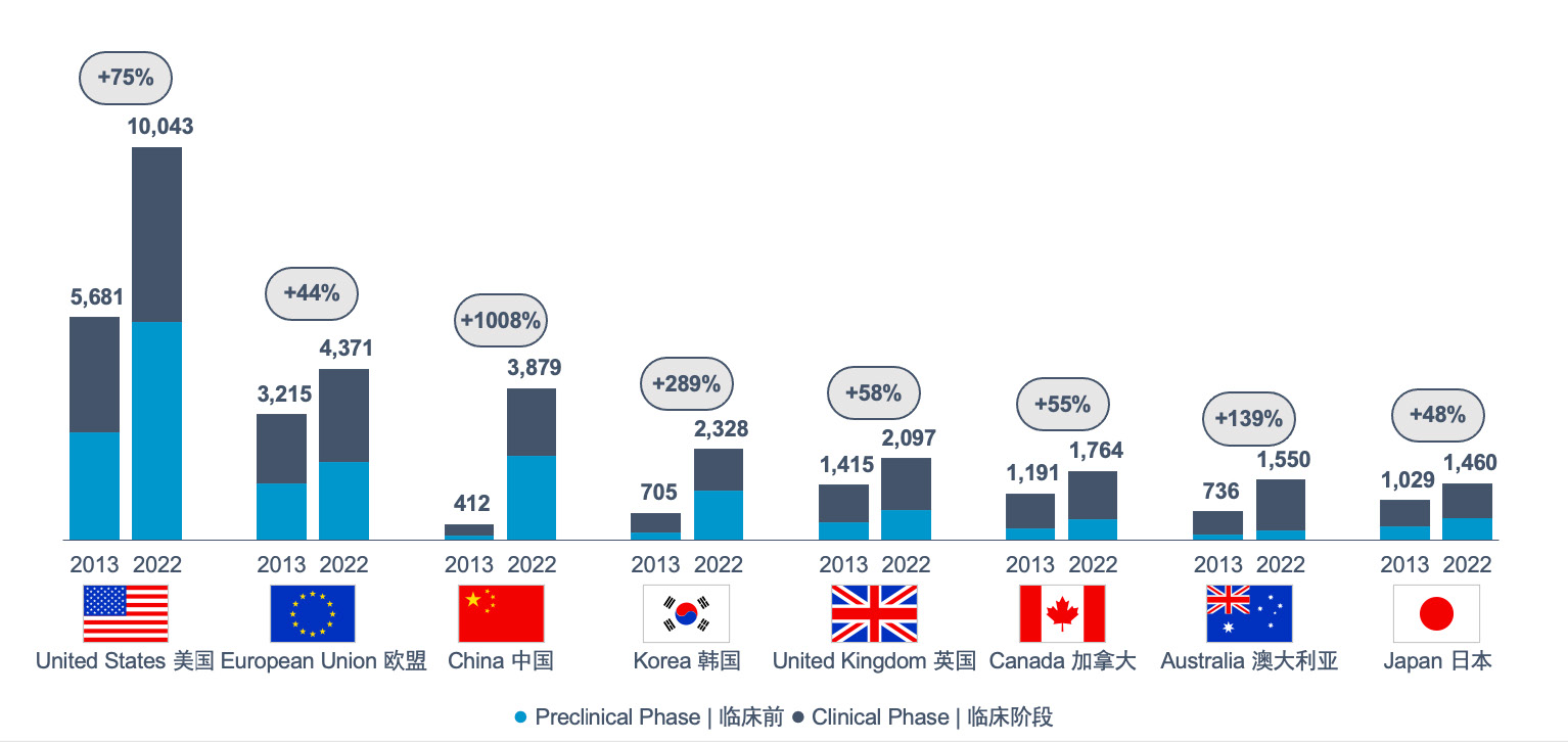 中国的研发管线取得了巨大的进展,处于临床前期和临床开发阶段的药物数量增长超过了 10 倍。预计在未来几年内,中国将以更快的速度批准更多的创新药物。